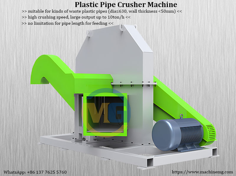 High Speed Plastic Pipe Crusher Machine for recycling waste plastic pipes by shredding and chipping process.