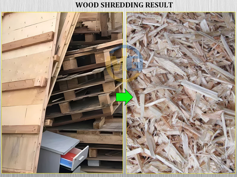 to efficiently shred kinds of pallets and wide boards, for example, plastic pellets, wooden pallets, construction formwork, door boards,